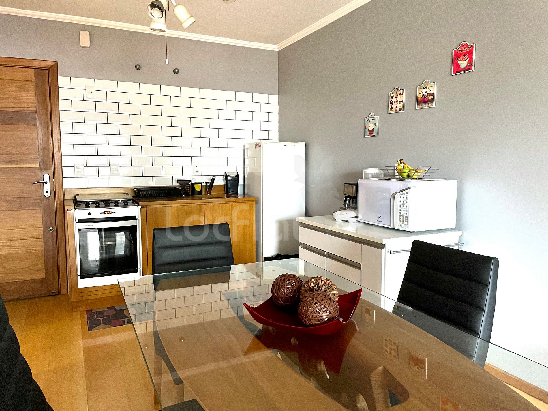 Apto de 1 dormitório, banheiro, sala com Smart TV Led 42”, Netflix, varanda envidraçada, cozinha completa com microondas, fogão, geladeira, eletrodomésticos, louças e utensilios.